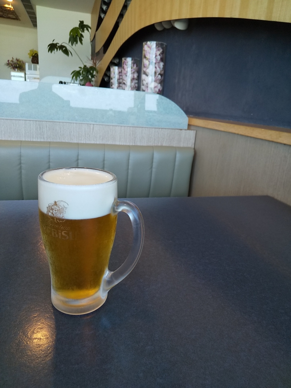 時間調整で、つまみとビールをいただきました。広いお店ですが、窓際で、くつろげます。何度か利用してますが、いつも空いていて良いですもお昼は、定食が充実してますね。景色がいいので、待ち時間が長いときは、いうも、ここです。