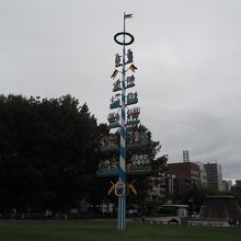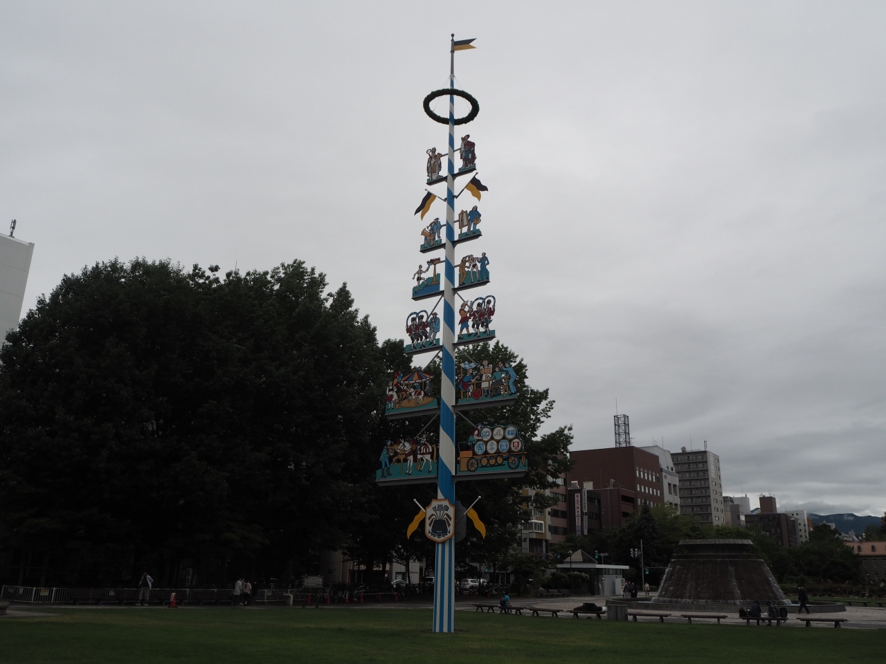 大通西11丁目と大通公園のだいぶ西の方にマイバウムはあります。マイバウムは日本語では「5月の木」という意味で、長い冬が終わり春が来たのを祝う意味合いがあるものです。ドイツに行くとみられるものです。これは札幌市がミュンヘン市と姉妹都市提携を記念したものです。札幌もミュンヘンと同じように長い冬が終わり、5月くらいから春めいて来るので、ふさわしい記念碑だと思います。