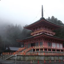 延暦寺の東塔エリアにある、阿弥陀堂のすぐ横に建つ昭和55年に再建された塔です。朱色の鮮やかさがとても目立ち、均整のとれた美しさがあります。根本中堂などからは少し離れた東塔エリアの端にあるので、観光客も少なくゆっくりと拝観ができました。