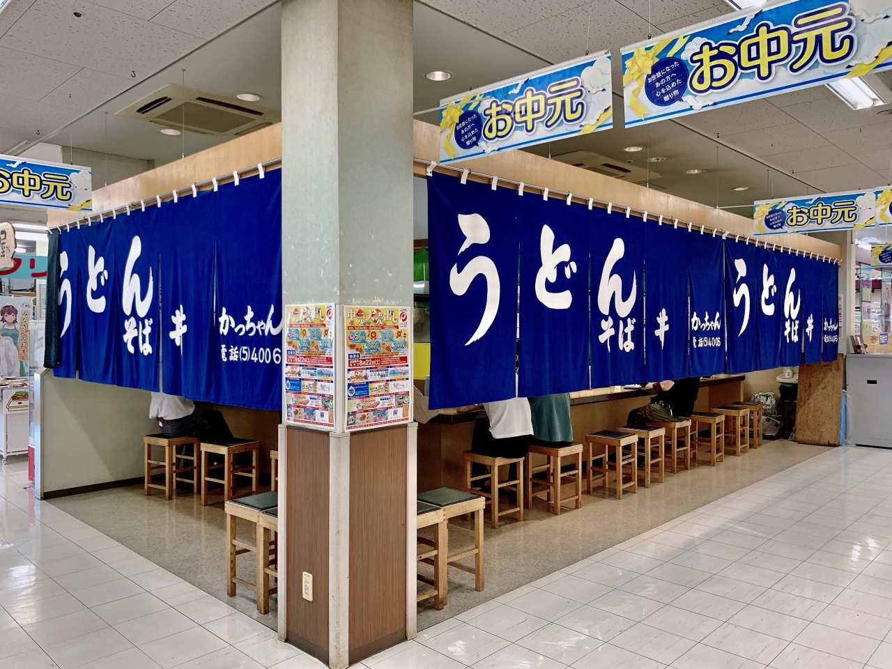 外観はイオン入口から入って直ぐの所にあり!大きな暖簾が店内カウンター席を覆うよにあるので外からは店内が見る事ができません。