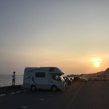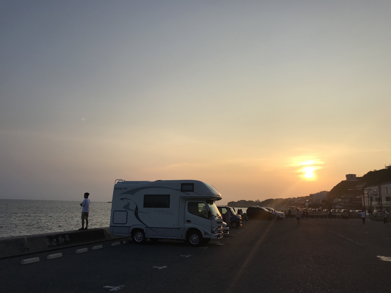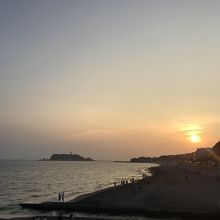 駅から歩いてすぐ行合橋の横断歩道を渡ると広い駐車場があり、そこからの江ノ島をバックに夕陽の眺めも素晴らしい