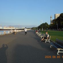 広い山下公園内では見逃してしまいがちですが、赤い靴の女の子の像が、花壇に囲まれた場所にこぢんまりと座っている姿がとても愛らしくて、この位置からだと氷川丸やマリンタワーもよく見える山下公園らしい雰囲気も好きです。