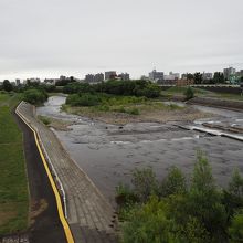 豊平川の河川敷にずっと川沿いに続くサイクリングロードがあります。豊平川の川風を感じながら、河川敷や堤防、土手の緑地などの自然を感じながら走れます。河川敷ではジョギングしている人や散歩をしている人も見かけます。目線を上げると札幌市街地の高層ビル群も見れるので、都会の中の自然があるのがいいです。訪れた日は気温22度、曇りの天気で、運動にも快適な環境でした。