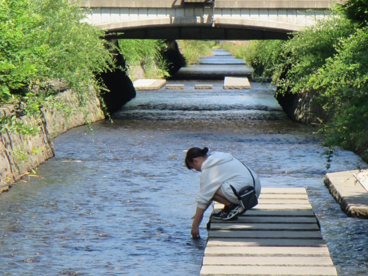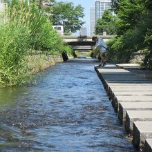 都市の街中を流れる川ですが、下水やドブ川ではなく、豊平川から取り込まれた比較的きれいな水が流れているので、子供たちを遊ばせることもできます。