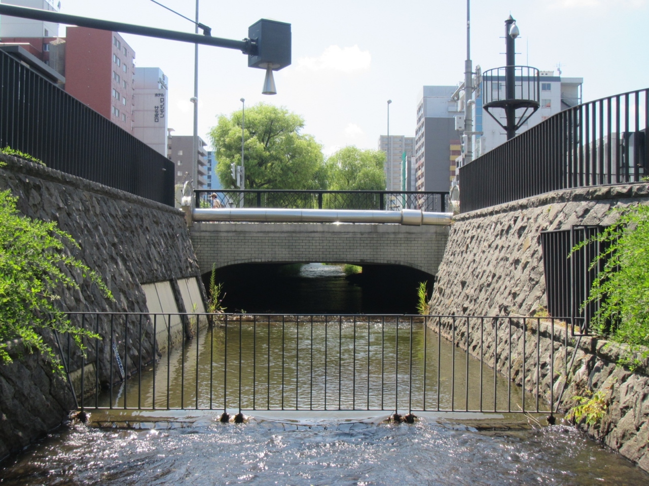幌平橋の上流から取水され、中島公園を通り、テレビ塔の裏を抜けて、広い創成川通りに沿ってそのまま茨戸まで流れる人工の川です。