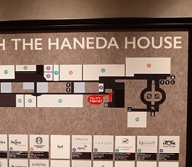 羽田空港第一旅客ターミナルの5階にあります。到着ロビーを歩いていると1階と5階を結ぶ直通エレベーターの案内があり気付きました。