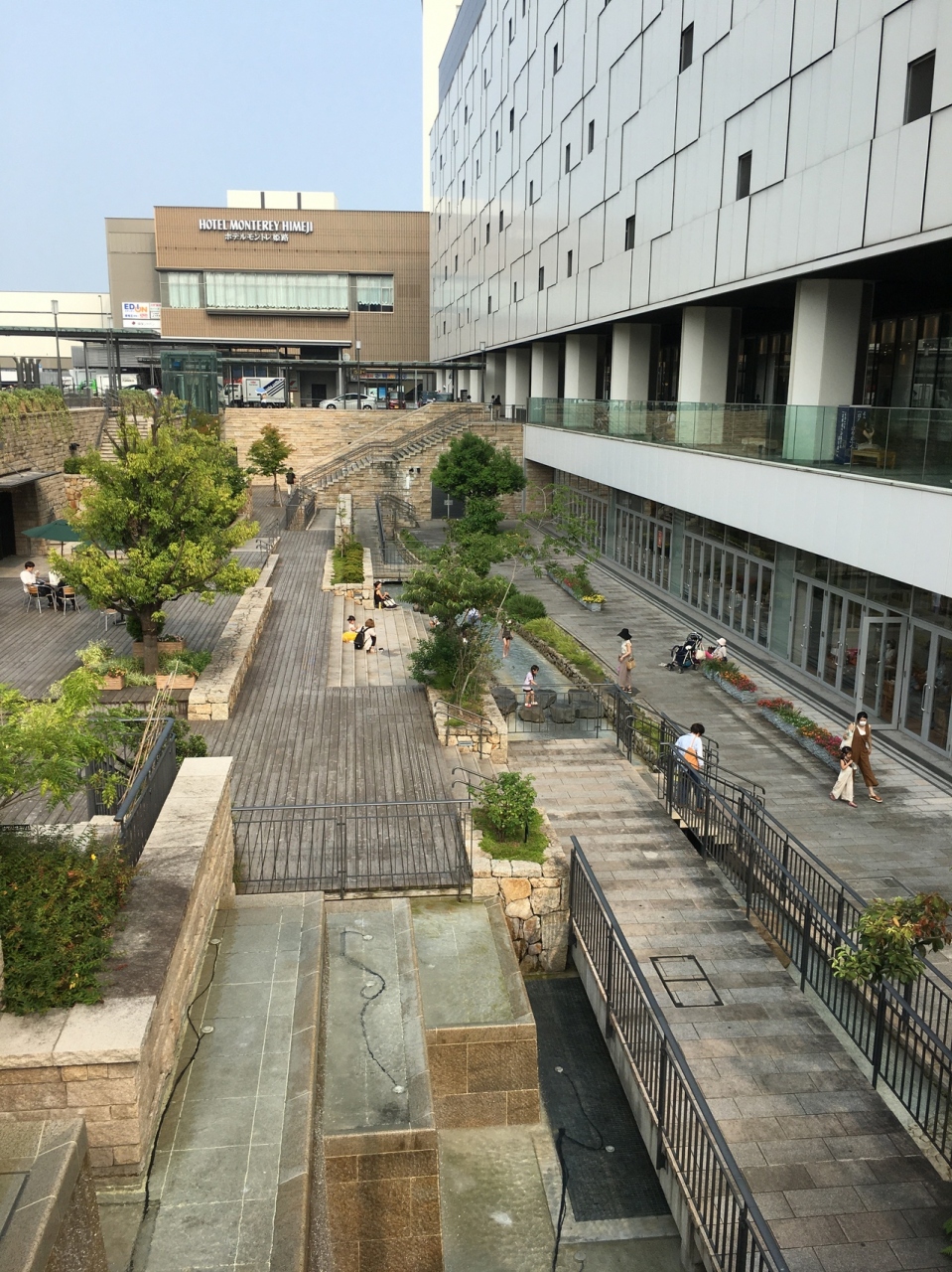 姫路駅に隣接しているので人も多く店内も新しく綺麗でした。姫路城側は外も見える店舗があって景色を眺めながら食べれるレストランもありました。6階建てのビルですが横に広いフロアでした。屋上は駐車場で、地下1階はフードコーナーです。