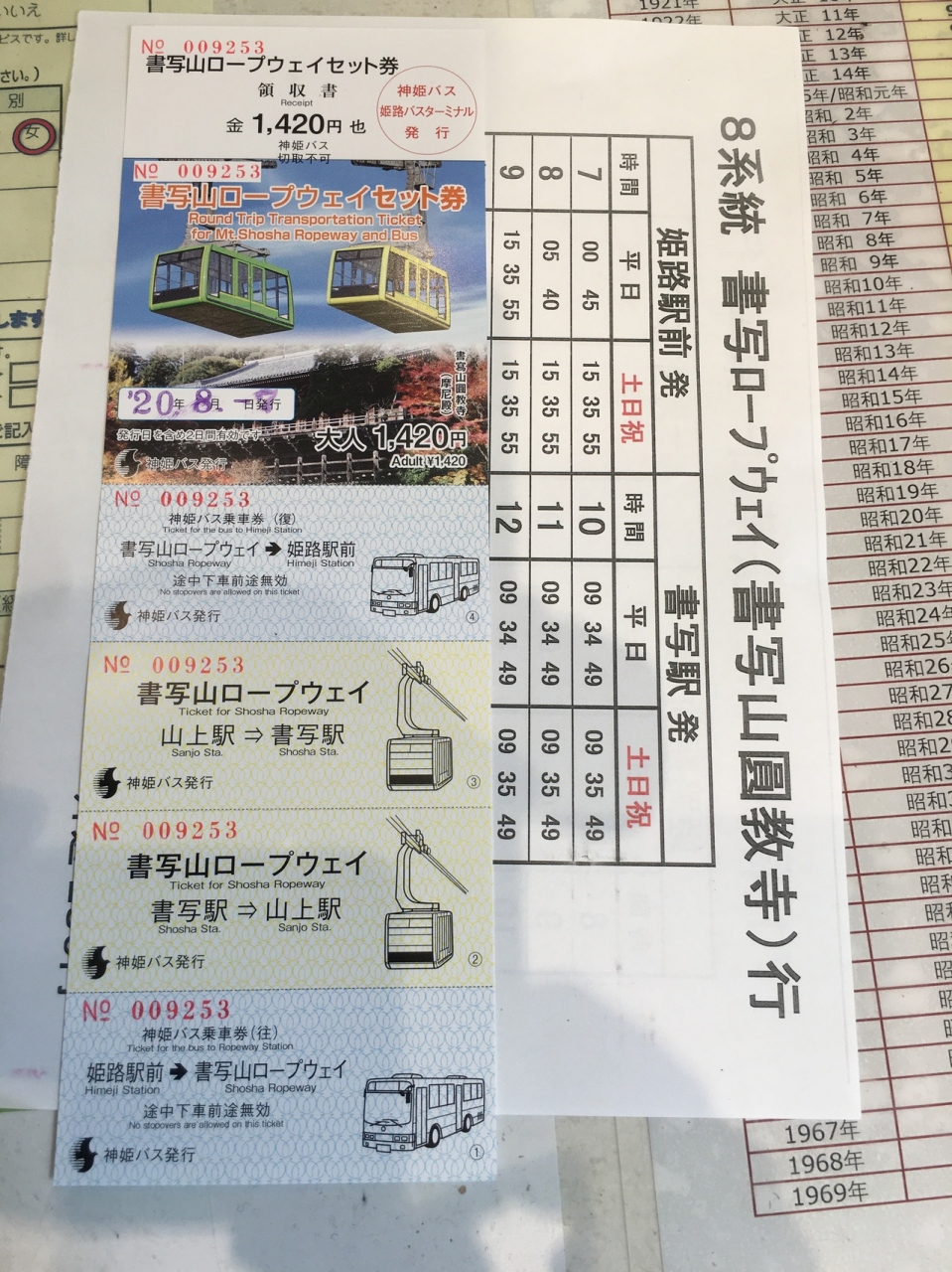 姫路駅北口から終点書写山ロープウェイまで乗りました。バスとロープウェイがセットになっている往復乗車券を駅前案内所で購入しました。バスには乗っていると停留所の声は子供の声だったので気分が和らぐ感じにもなり、乗っていて楽しかったです。