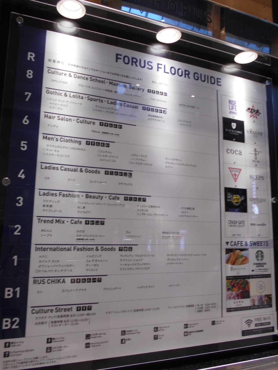 若い方向けのショップがメインですが、店内が綺麗なので、暑い時は涼むのにもおすすめです(ソファは各フロアのエスカレーターの近くに結構あります)。