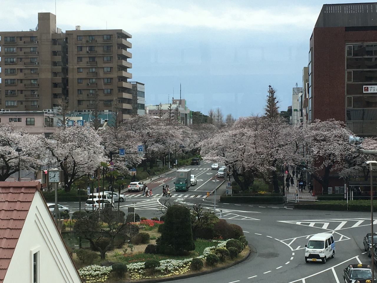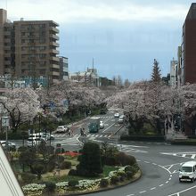 国立駅南口からまっすぐ南に延びた大通りです。文教都市が計画的に作られたため、すっきり整備された街並みが広がります。春は桜が楽しめます。この春、国立駅の三角の旧駅舎が復元され、町の新しいシンボルになりました。
