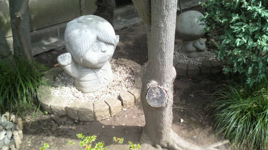 (植え込みの中に「ゲゲゲの鬼太郎」などの石像がひっそり並んでいてちょっとびっくりしました)