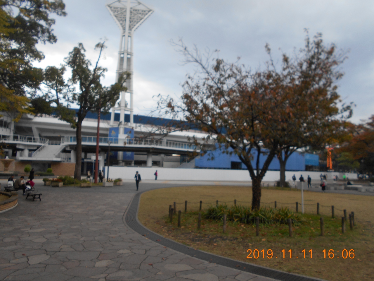 スタジアムの建物は大きいのでよく見えますが入り口は横浜公園の中にあります。