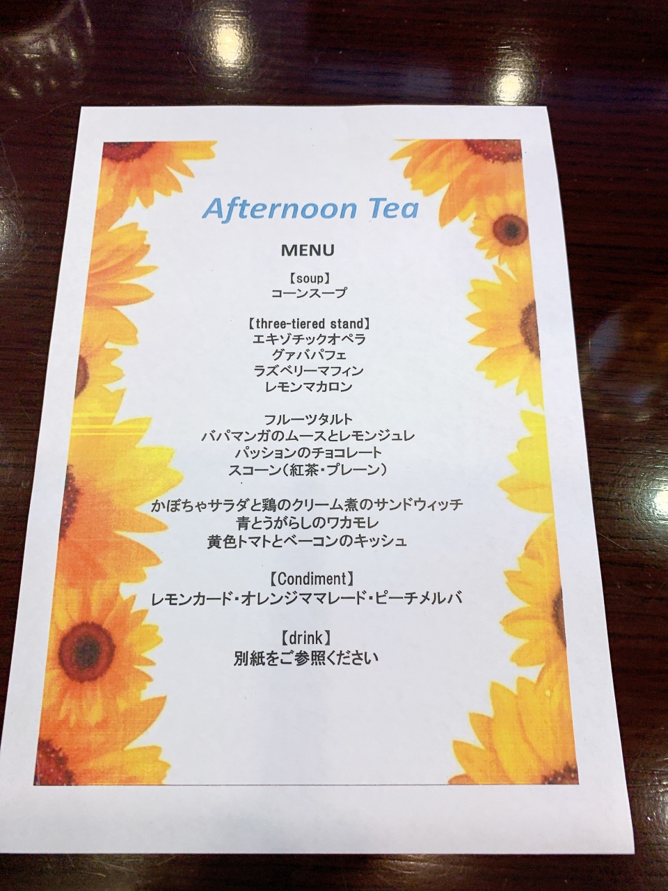 夏らしい黄色がふんだんに使われ、美味しいアフタヌーンティーでした。