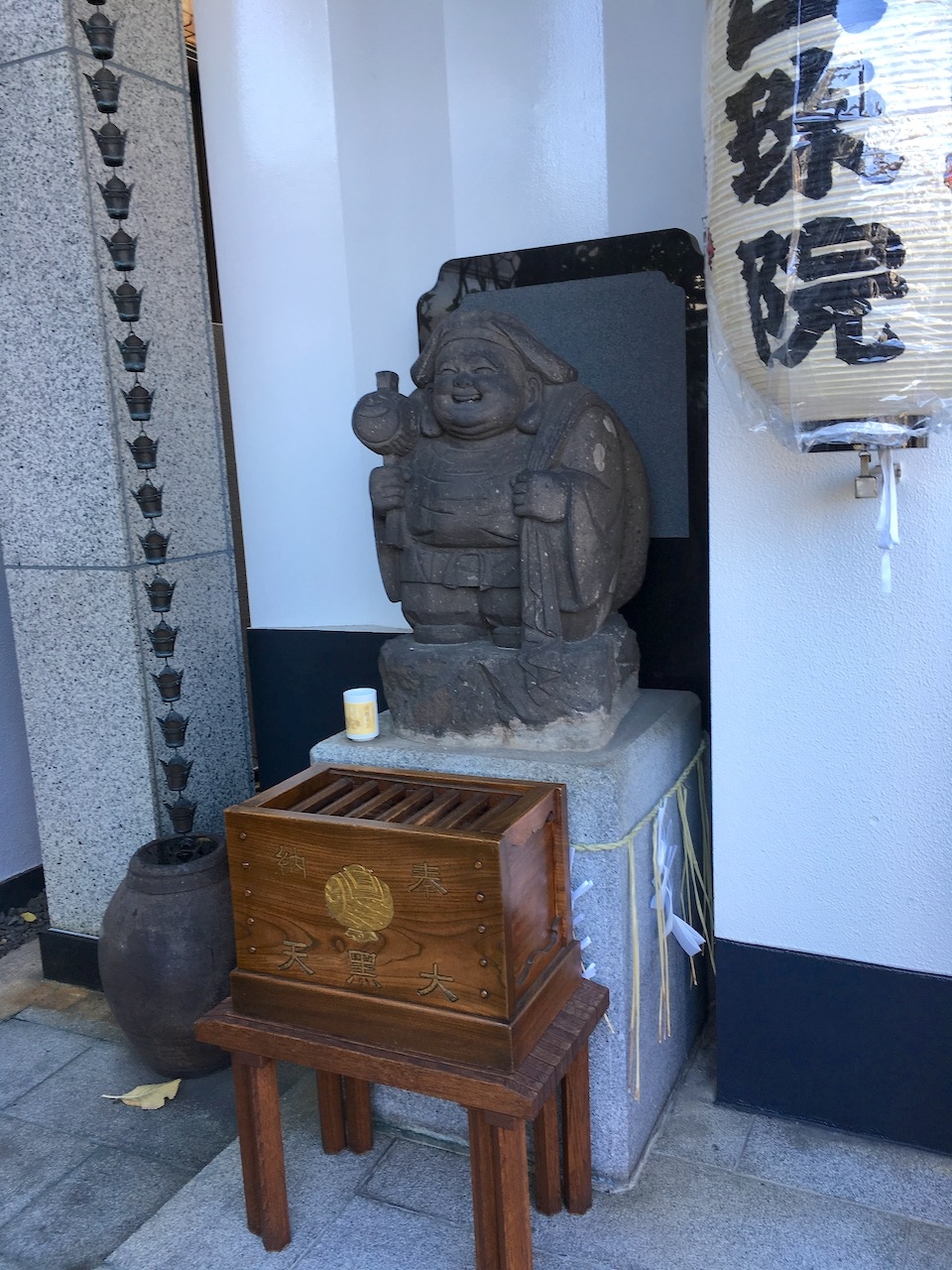 こちらには大黒天が祀られていて、小槌を持ち袋を背負う、破顔した石像が飾られていました。