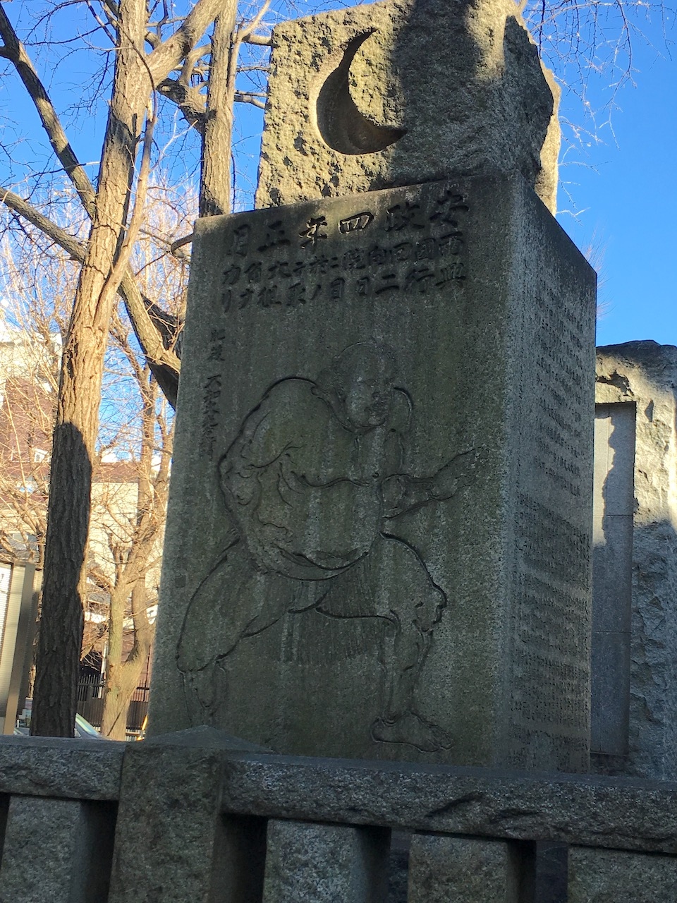 左右に建つ石碑には昔の力士の絵姿も刻まれ、歴史を感じる一角でした。