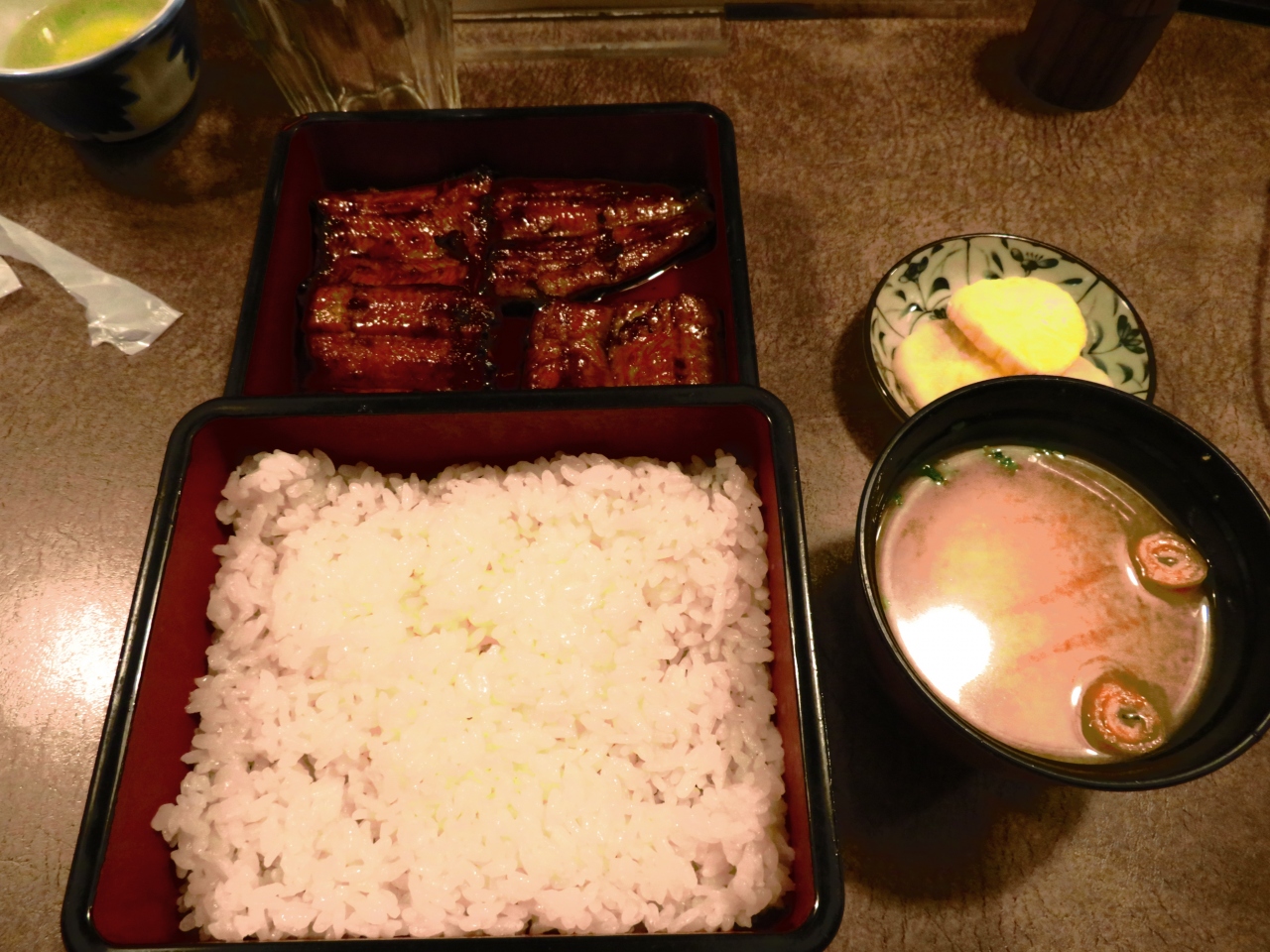 10時半開店のようですが、お店の前には既にたくさんのお客さんが並んでいました。こちらのお店は、ガイドブックにも載っている老舗の鰻屋さんです。お持ち帰りのお客さんも多く、店内には開店と同時に入る事ができました。一人だったのでカウンター席に案内されました。私が注文した料理はうな重の「松」。鰻が4つ入っていて2820円でした。私にとってはかなり贅沢なランチでしたが、鰻は脂が程よく乗っていて、最高に美味しかったです。
