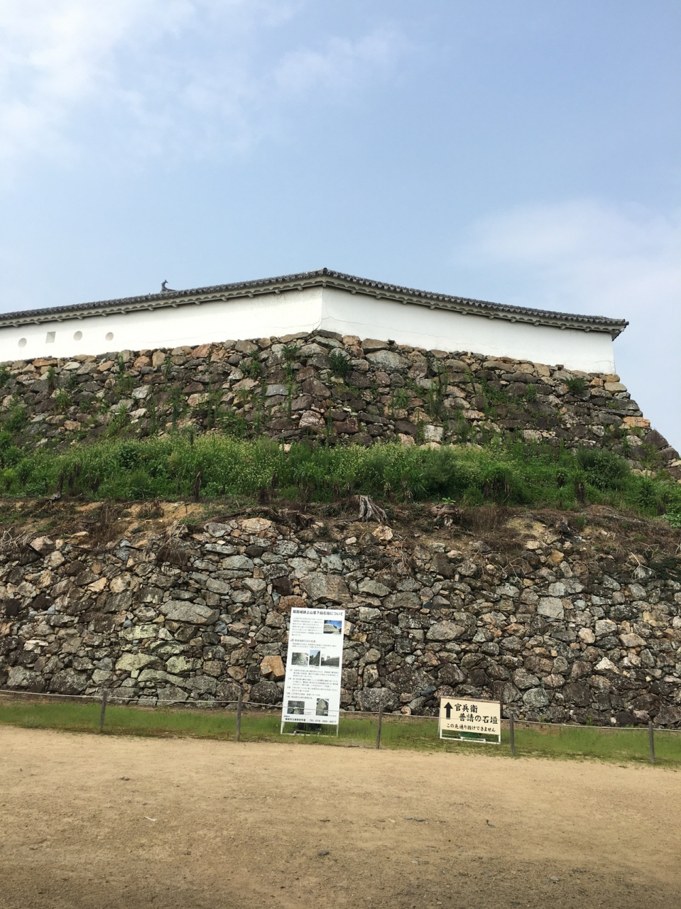古い石垣の上には新しい石垣がのっかっているような風景で、上の石垣は大きく整然と並んで見えましたが、下の古い石垣は石を積み上げているような感じ隙間に小さな石を当て込んでいるように見えました。昔の石垣と感じられる石垣でした。