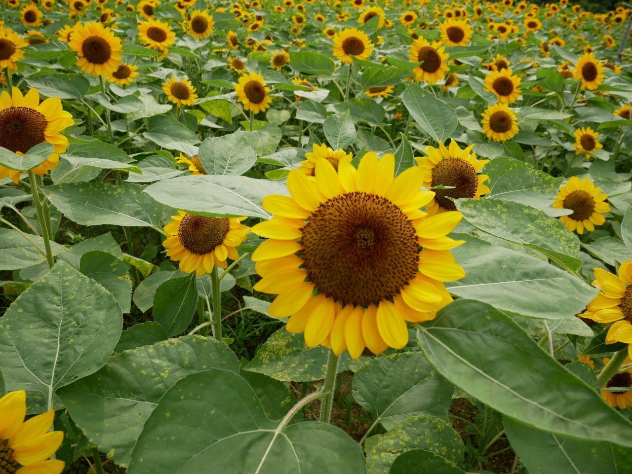 ひまわりは、植物園の一角で咲いており、連日多くの人でにぎわっております。