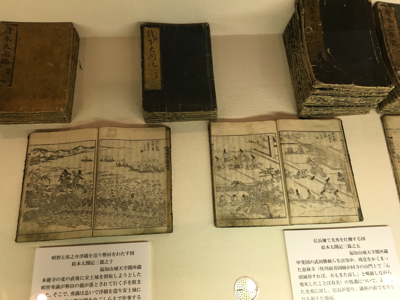 城の下に明智光秀ミュージアムがあり城とのセット券700円を購入。明智光秀や福知山城のことが詳しく展示されていてじっくりと見学しました。城は石垣が目立ち墓石も石垣に使われているのが分かりました。昔の古文書の様なものも展示され、4階の最上階からは福知山市内を四方に見ることが出来ますが、狭い場所でした。