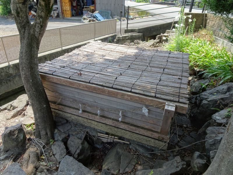 井戸はよくある半径50cm程度のものだと思っていましたが、お風呂より大きい四角形でした。すだれがかかっているのは、落ち葉が入らないためでしょう。