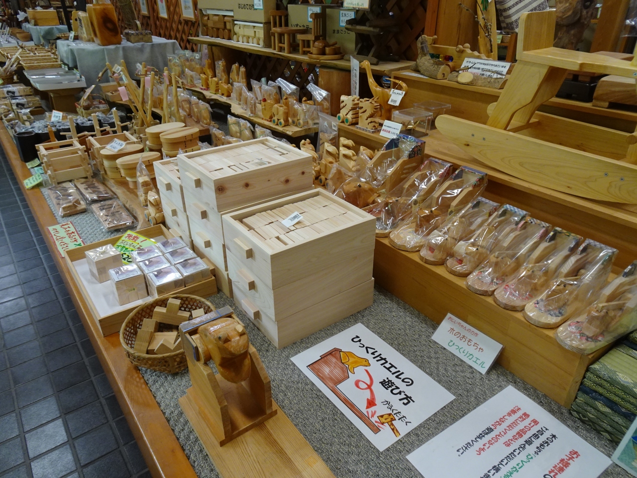 こちらには食事処に農産物直売所や観光案内所など道の駅の典型的な施設は全くなし。喫茶コーナーでは駅長さんが一杯だてコーヒーを淹れてくれるとのこと。また売店は「手作り」にこだわり、木製品や機織り製品のほか、旬の食品などが主に並んでいました。