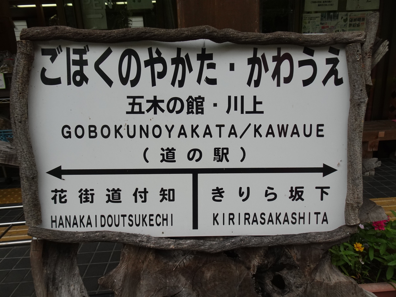 規模は小さく渋い感じの建物。駅名の「五木(ごぼく)」とは木曽五木(ひのき、あすなろ、ねずこ、さわら、こうやまき)のことで、道の駅の建物にはこれらの木の尺角柱が使われているそうです。