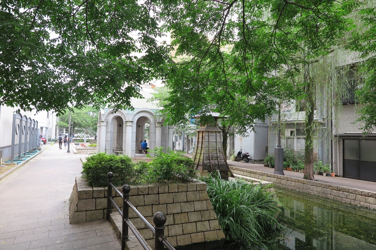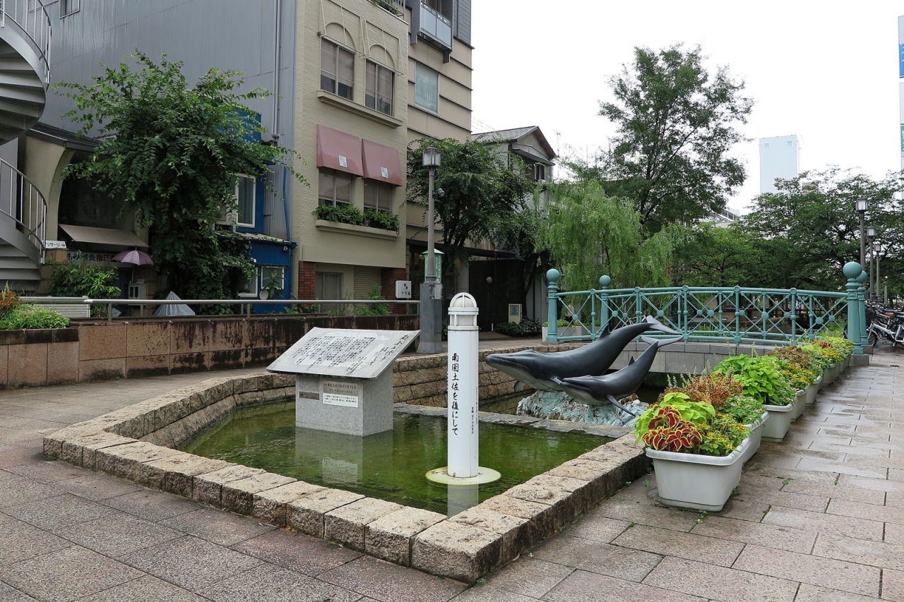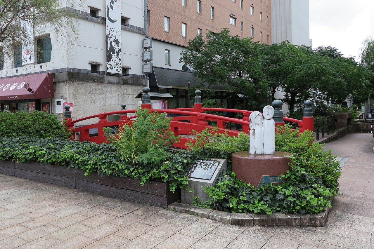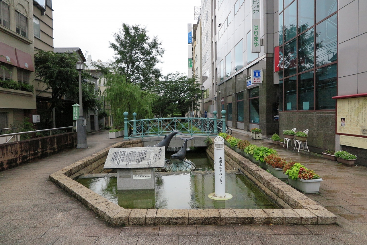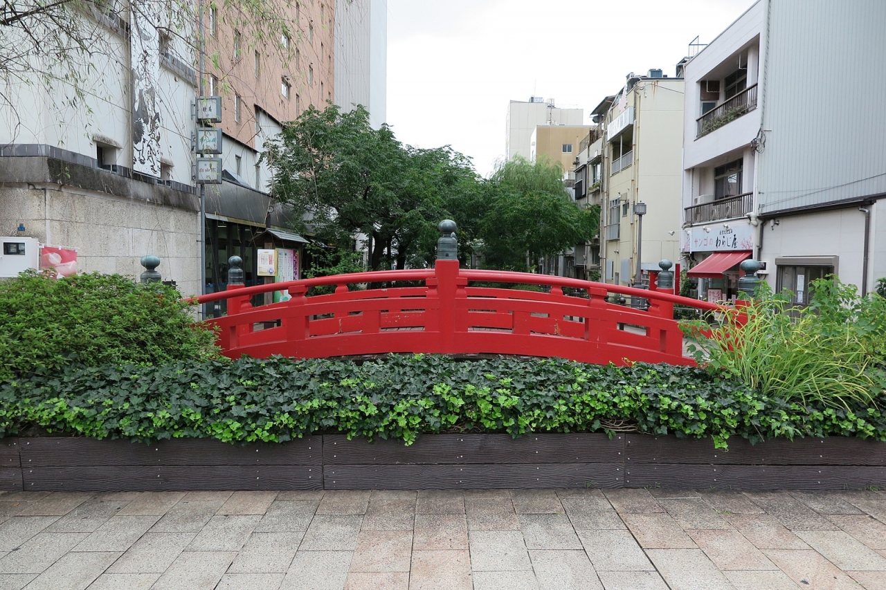 江戸時代の豪商であった播磨屋さんと櫃屋さんが互いに行き来するため堀に架けた私的な橋が、どのような経緯で観光地になったのかは分かりませんが、とりあえず高知随一の観光地に違いないと思います。その堀は高度成長時代に汚染され、埋め立てられてしまったらしいのですが、現在は人口の水路が設けられ、モダンな雰囲気の公園になっていました。