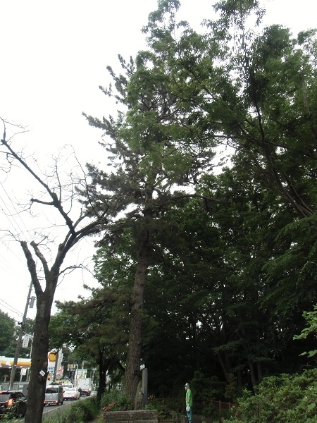 小金井橋近くの玉川上水沿いに、それと判る立派な松と説明板があります。