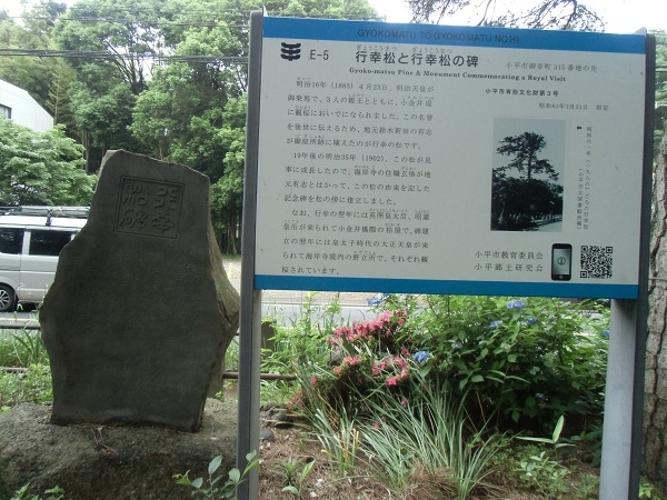 説明板によると、明治16年(1883)、明治天皇が桜を見に訪れた記念に地元有志が植えた松です。