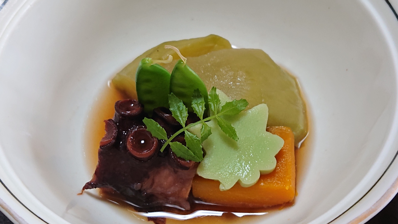 旅館の客室でゆっくりランチがいただけました。こんなに一度にタコ料理をいただいたのは本当に初めて。お造り、酢の物、やわらか煮、天ぷら、タコ飯。。今まで、あまりタコに興味がありませんでしたが、中でも、タコのやわらか煮は本当に美味しかったです!!