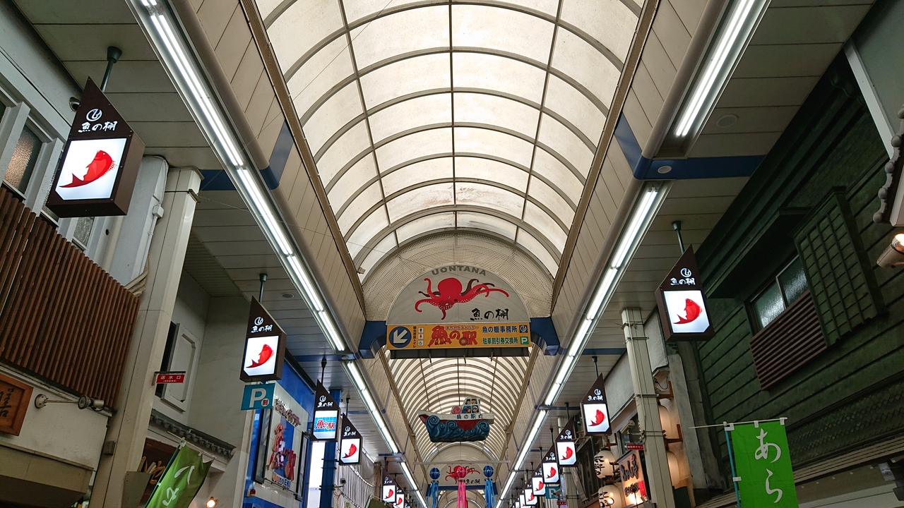 近代的な明石駅からすぐですが、一気にローカルな、濃い雰囲気になって笑っちゃいました。アジアの屋台のような、活発な独特のノリ!いたるところに、明石焼きや、タコのやわらか煮が美味しそうに売っています。タコのやわらか煮を買って帰りましたが、美味しかったです!