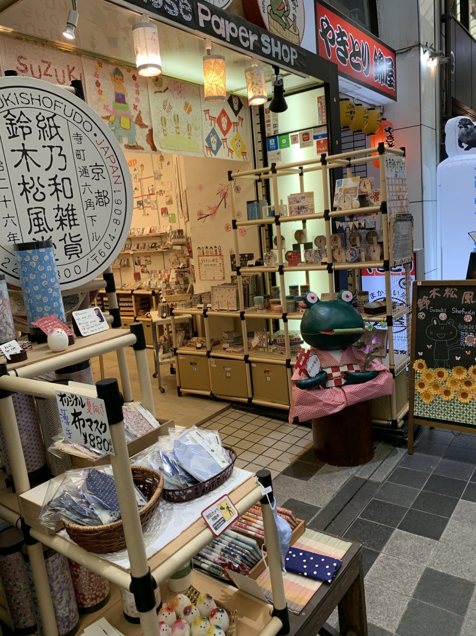 「寺町通商店街」を歩いていたら 大きなカエル が お店の前で 看板娘 で お出迎え(^^)