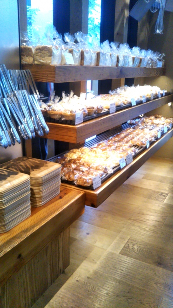 東京・銀座にある「無印良品 銀座店」の入口横にある『ムジダイナー ベーカリー』は、無印良品のベーカリーショップで、焼きたてのパンが販売されいます。店内は、わりとこじんまりとしています。次から次へとお客様が訪れています。