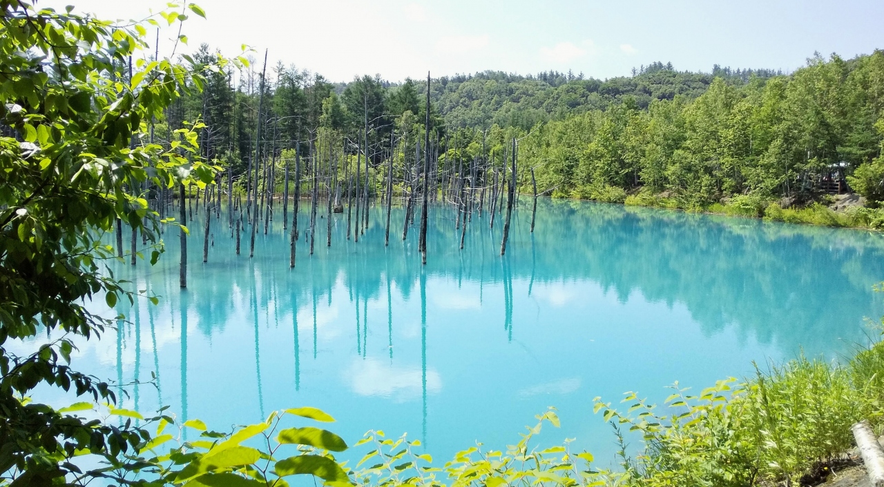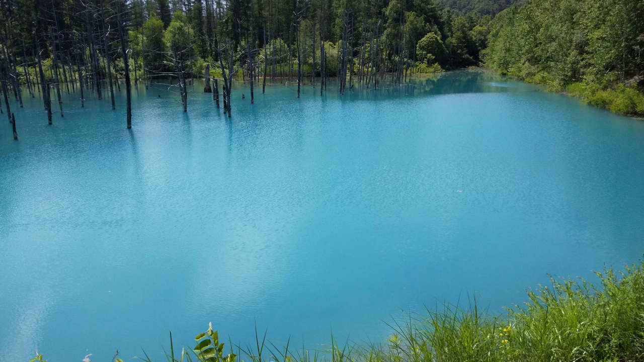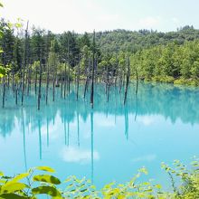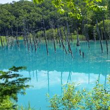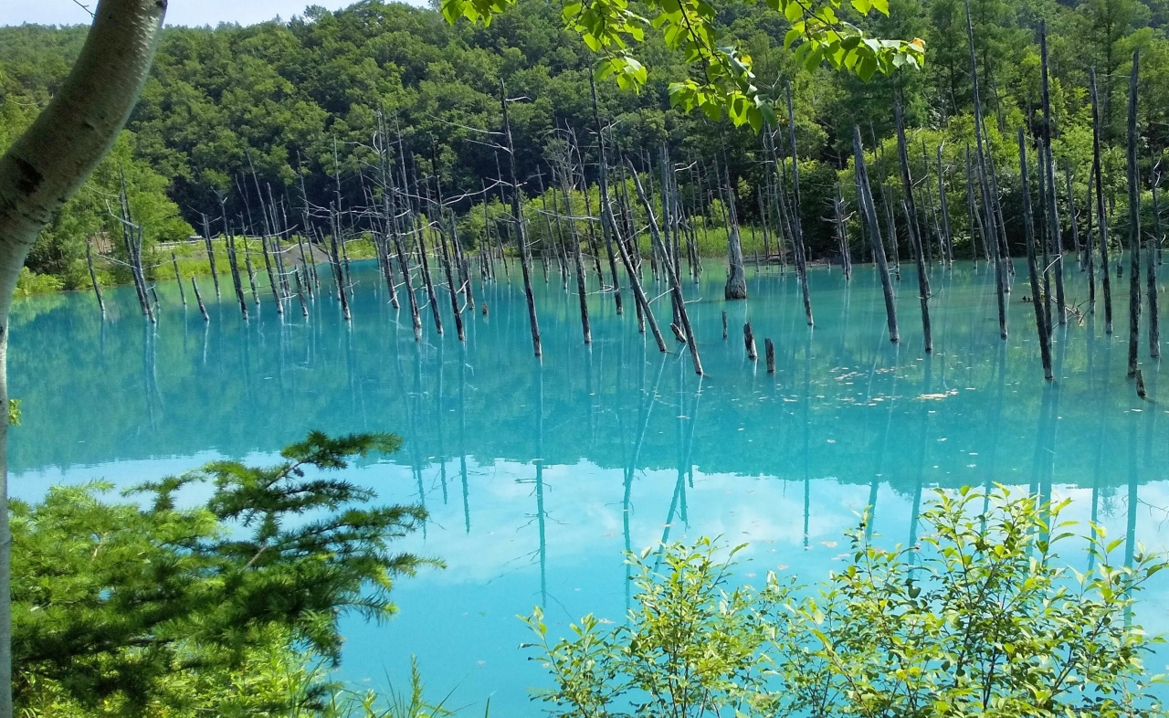 この夏 道外への旅行は気が引けるので、北海道内の人気スポットに平日に行ってみようということになり 初めて「青い池」を訪れました。