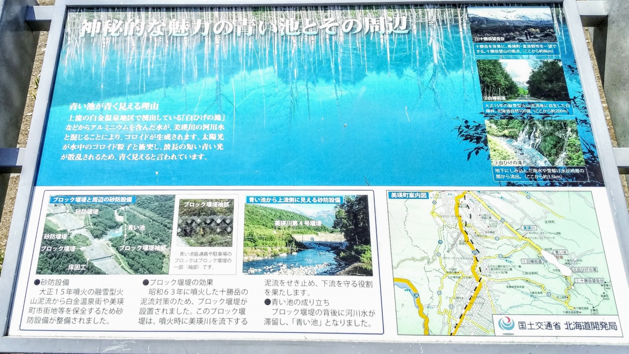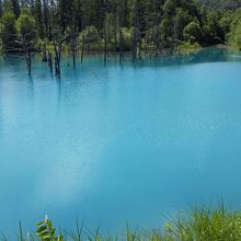 本当に青いのか、お天気や風などの条件が揃わなければ青く見えないのか…半信半疑でしたが、先に行った「白ひげの滝」が流れ込む美瑛川の水が青く見えたので、きっと青く見える!と信じて行って良かったです。