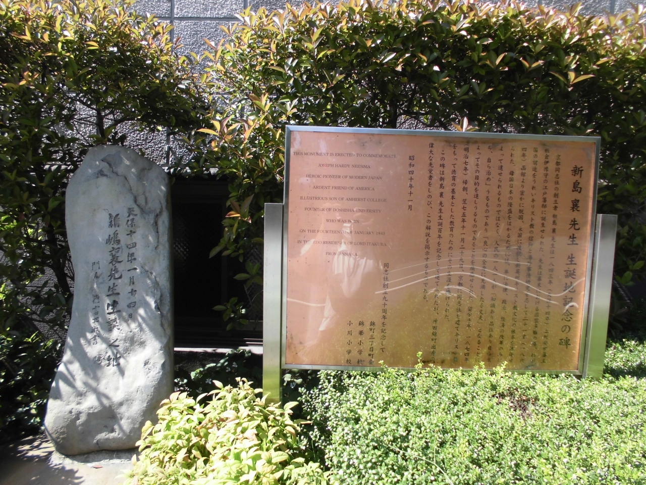 同志社大学の創始者・新島襄は小川町駅からほど近いこの地で生まれました。京都で生まれたと思っていましたが、東京の生まれなんですね。実は新島襄の終焉地は大磯なのですが、その地も偶然ですが行くことができました。生誕地と終焉地をどっちも見れたのは初めてかもしれません。