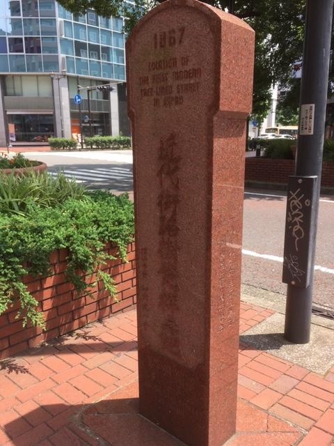 碑はそれほど大きくなく、特筆すべき意匠でもありません。ただ、「近代街路樹」という言葉の意味を考えると、思いは深くなります。明治時代以前にも、いわゆる「並木」はありましたが、街の中に規則的に植えられた樹々は、その街の景観の美化に寄与するものであるはずです。馬車道はガス灯発祥の地でもあります。やはり、夜に来て、街路樹が夜の灯に照らされる風景を堪能するのがよいと思います。