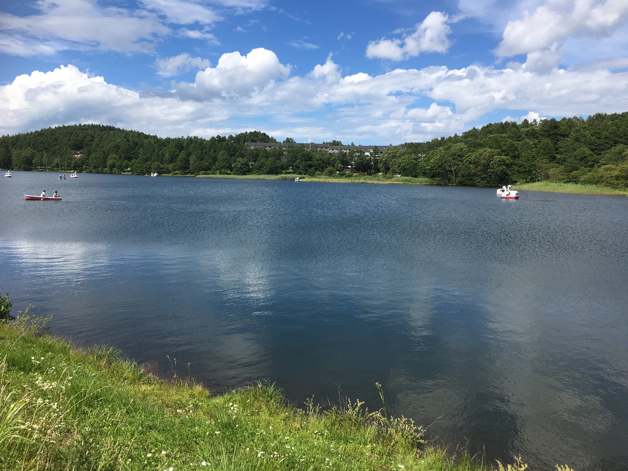 長門牧場の帰り道に立ち寄りました。湖畔の沿った道を散策する方がちらほら。また、湖脇の湿地部分に木道があり、そちらも楽しかったです。美ケ原高原で咲いていたいくつかの高原植物が咲いており、高地まで行かないけど花を見たい方にはうってつけだなと思いました。