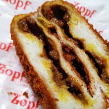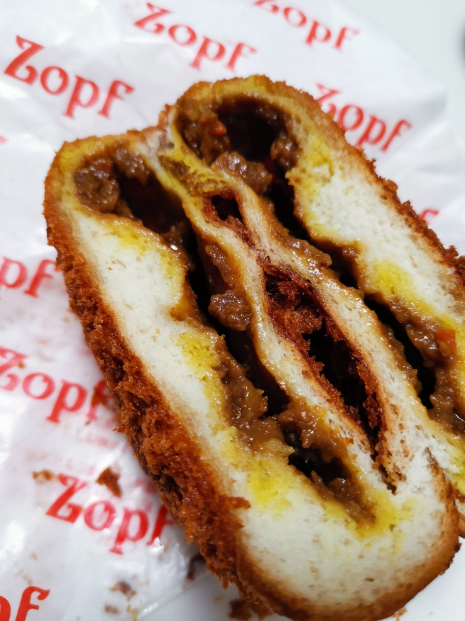 行列店だこらか、作り置きではなく、揚げたてを買うことができました。歯ごたえのあるカレーパンの衣に特徴があると思いました。3個以下の購入時は、有料ビニール袋を買うか、ビニール袋を用意していないと、持ち帰り困難だと思います(包み紙だけでは、油か染みるので)