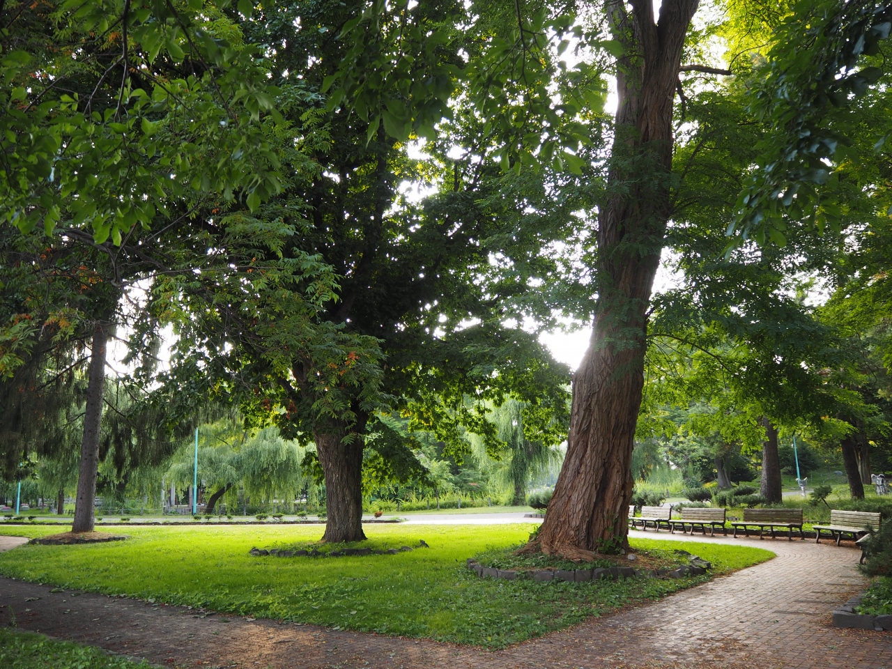 旭川駅から平和通買物公園を1キロほど歩いた左側に常磐公園はあります。入口付近には旭川中央図書館があり、いい目印になります。公園は広く、中央部には大きな池もあり、公園内には記念碑もいくつかあります。遊歩道がきれいに整備されているので、散策などにもいいです。夕方に歩きましたが、地元の方が散歩されている光景も見られました。