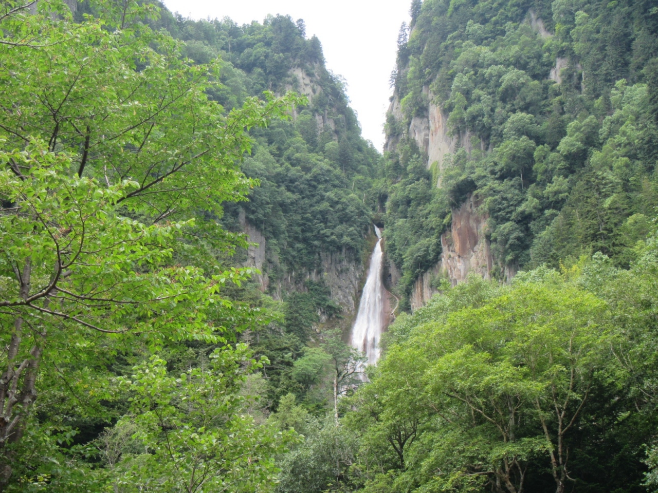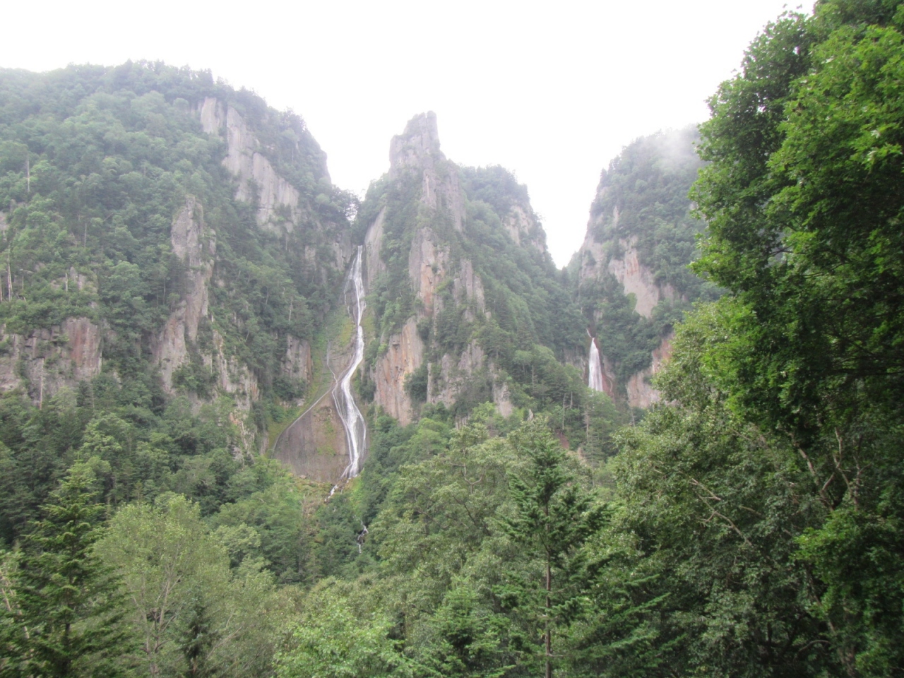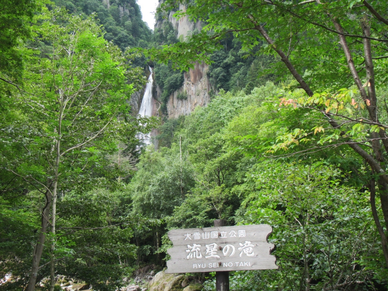 渓谷の絶壁に流れ落ちる2筋の滝(銀河・流星の滝)のうちの一つで、右手側(層雲峡温泉側)が流星の滝で、道路沿いに看板が立っているので分かります。