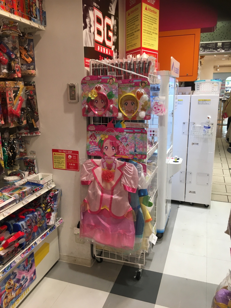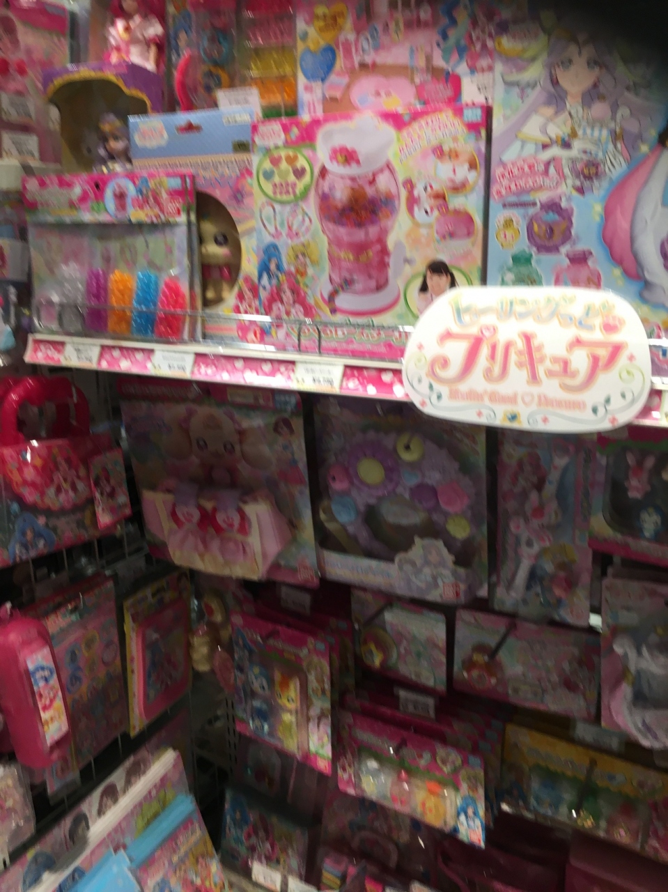 ストリートの端の方にある店舗で、こじんまりとした店舗でした。冷感マスクが店の中央に置いてあり、キーフォルダ等の小物が目立ちました。プリキュア等のおもちゃ類も置いてあって、小さな子供が多くいる店でした。