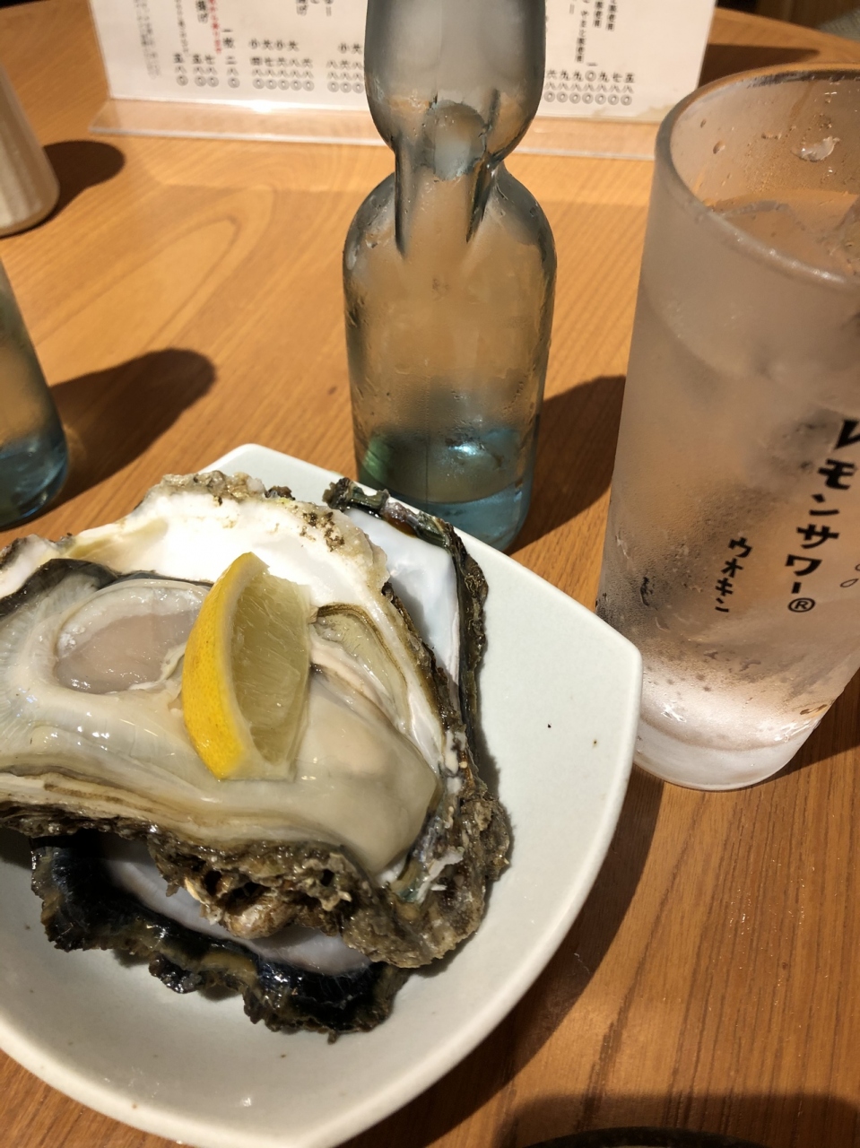 お刺身食べたいと思ったら豊洲らしいお店が!生牡蠣もお刺身も美味しかったです。ラムネがあるのは子連れとしてはポイント高いけど、400円は割高。だけど、生牡蠣やお刺身は割安な気がする。夜だといい値段になるので今度は定食を食べに行きたい。