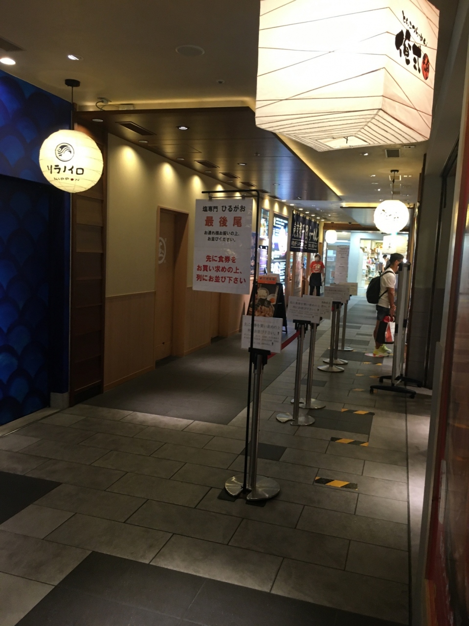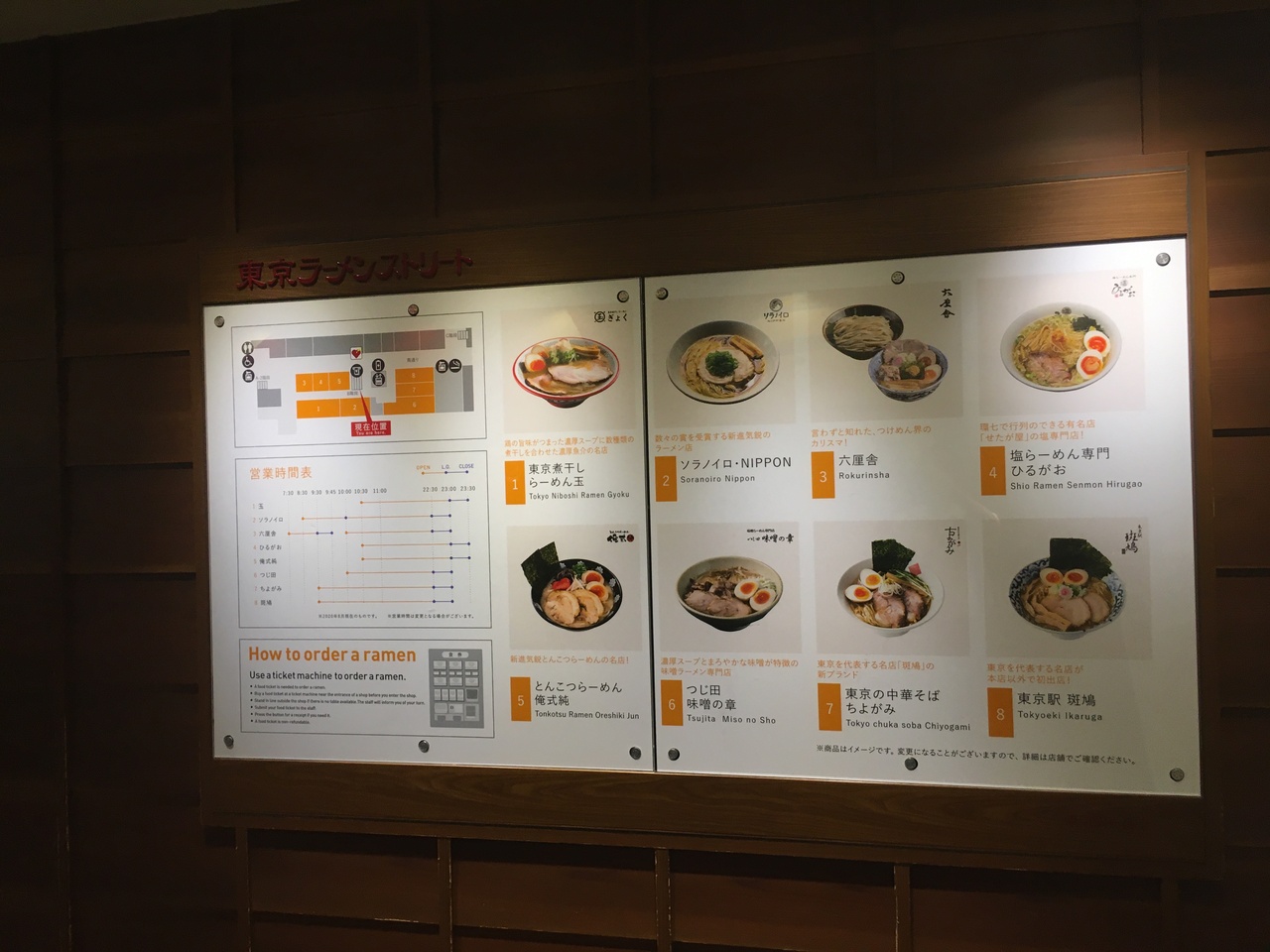 狭い一角には8つの有名な店が集まっていて、そのうちの1店舗は物凄い行列が出来ていました。少し暗めの通路沿いに店があり東京駅地下街なので混み合っていましたがお客さんの出入りは早かったです。どの店もSUICAの電子マネーが利用出来ます。