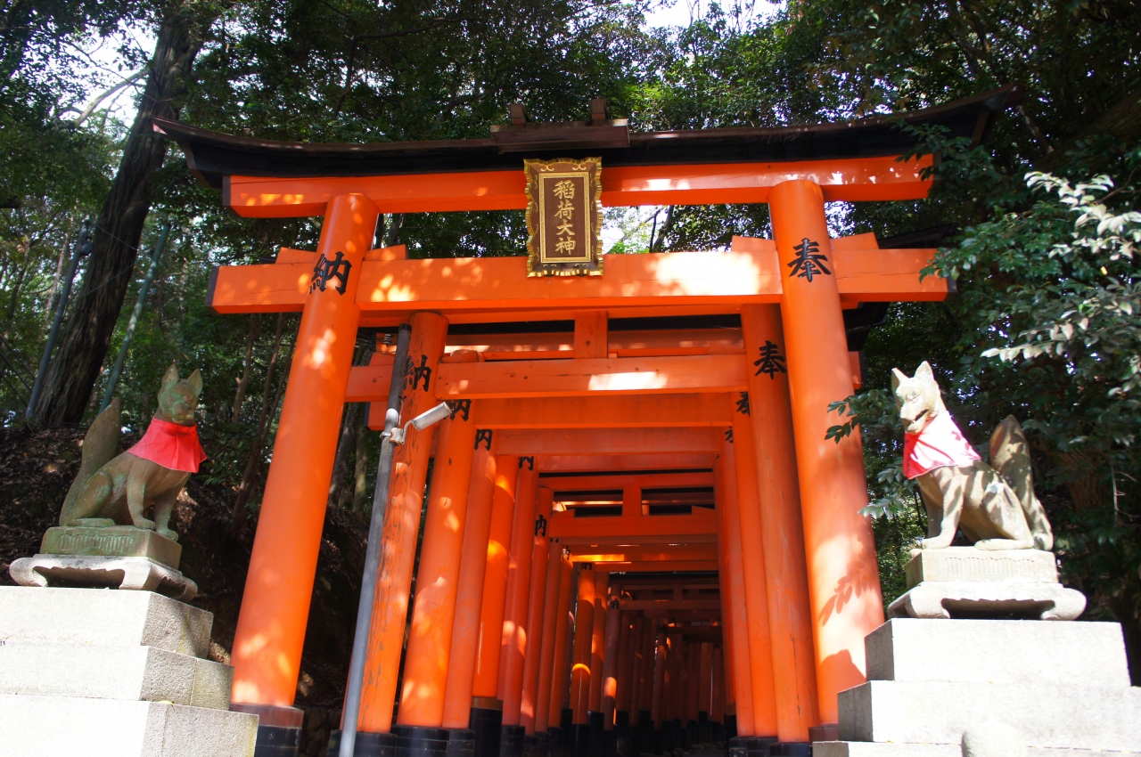 伏見稲荷大社といえば、この赤い千本鳥居が有名です。この千本鳥居は、伏見稲荷大社の楼門や本殿をみたあとの結構奥のほうにありました。途中、左右2列に鳥居の列が分かれていました。特に外国からの観光客が多かったです。
