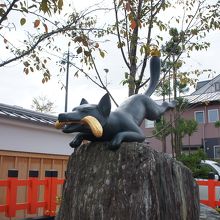 伏見稲荷大社の境内にはいろいろなところでキツネの像を見かけました。入り口付近や、楼門の手前などにキツネがおり、それぞれ何かを口にくわえていましたが、これは宝物を加えているのそうで、それぞれ異なるものを加えていました。