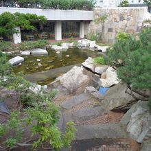 札幌市役所庁舎の前庭になるのでしょうか、小さめですが、池があったり、石が配置されたりしてきれいに造られている庭園です。しかも、池に面して市役所の食堂みたいなのが見えましたので、食事をしながら眺めることもできるのだと思います。