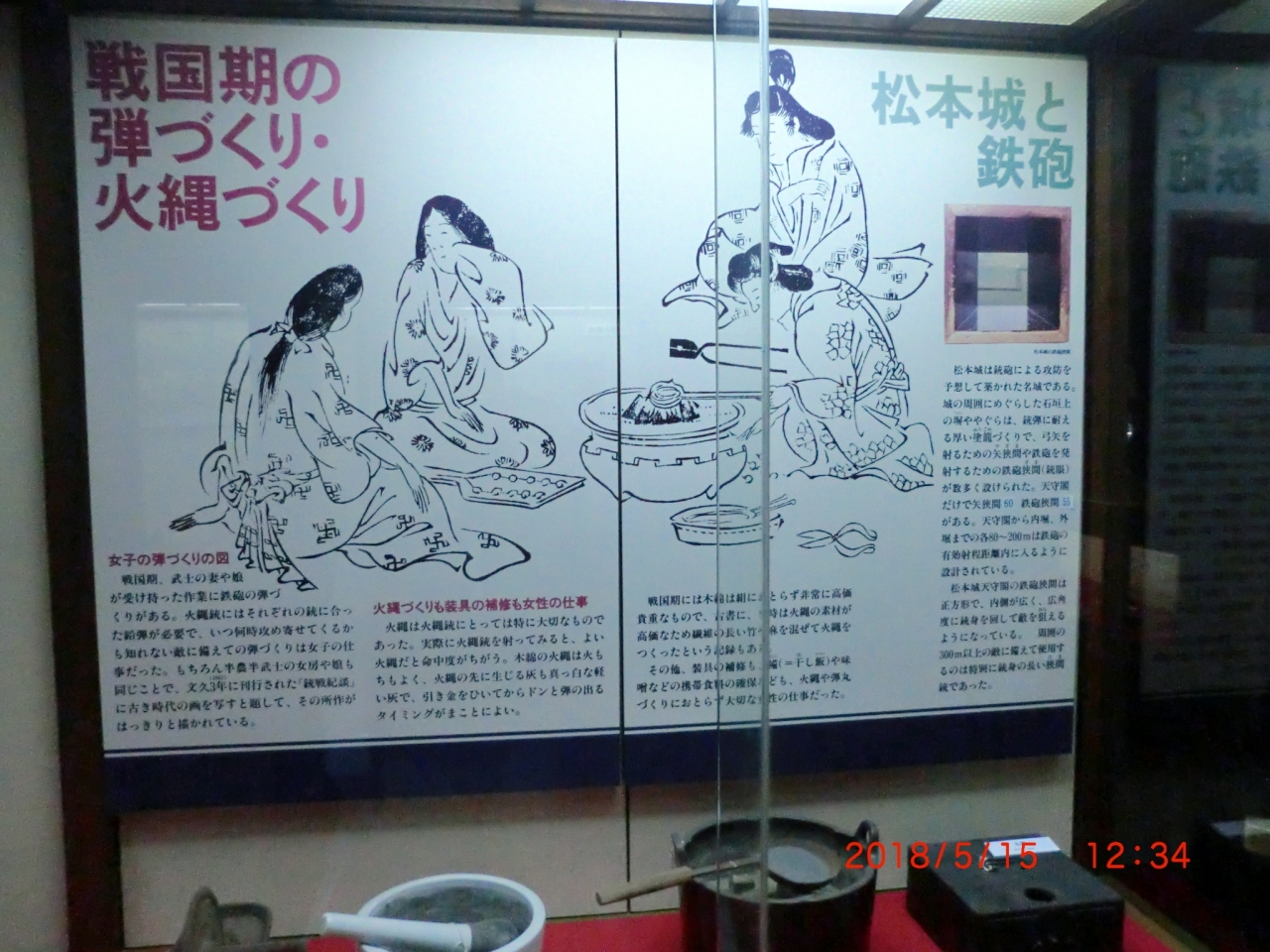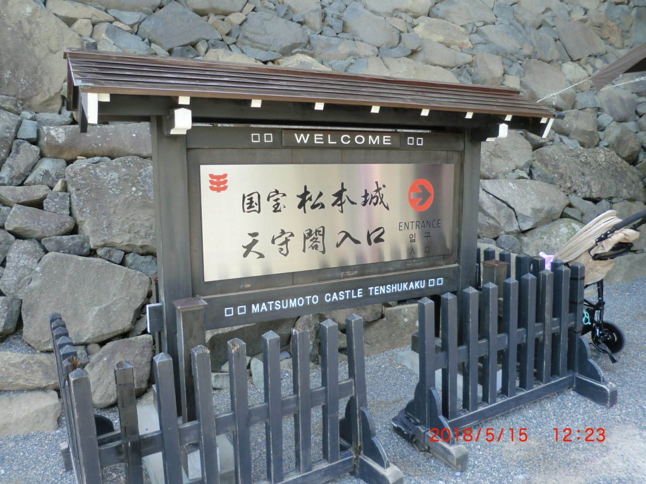 国宝の城は5城ありますが、松本城もその一つです。南北300m位、東西400m位の松本城公園の中央にあります。入場料610円を支払い中へ入りました。展示物はCG化されてなく、銃器類が多くあり、戦国時代からの城と推測しました。城の壁が黒いのは戦国時代の城だからでしょう。残念なのは「松商」=松商学園(推測)、[LUIZ」= ルイス など柱や壁に切り込みが入っていたのには残念です。行った時にはガードマンが居ました。