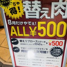 〈 8月だけやでぇ めっちゃお得、替え肉 ALL ¥500〉がおすすめ