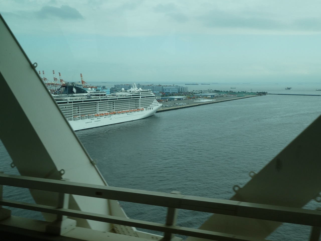 横浜港大黒埠頭から山下公園までバスで送られた際に渡りました。景色は上段の高速道ならいいのですが、下段の一般道からだとトラスの中を走るので景色はイマイチ。写真はどうやってもトラスが入り、かなりの技術が求まられます。景色撮影は前後の取り付け部分が勝負でしょう。ただ街側は山下公園側も大黒埠頭側も高いネットがあって全然だめでした。